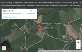 Per Zug von Langenthal oder Huttwil nach Rohrbach BE. Ab Bahnhof Rohrbach folgen Sie der Beschilderung Richtung Wyssbach. Ein idyllischer Wanderweg führt Sie in ca. 20 - 30 Minuten nach Wyssbach zu unseren Hof.